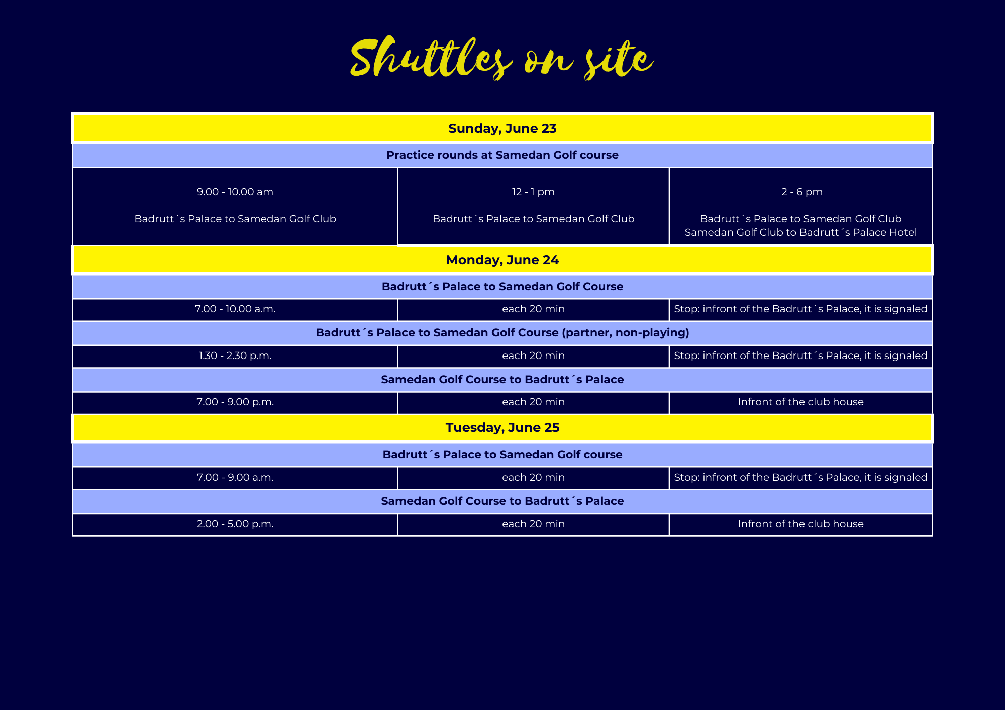 Shuttles which will be booked out of our times need to get payed by the participant.